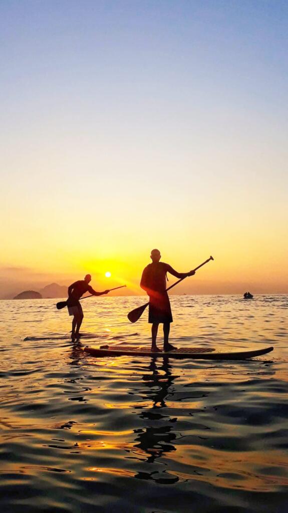 - Stand-up paddle sobre águas calmas.